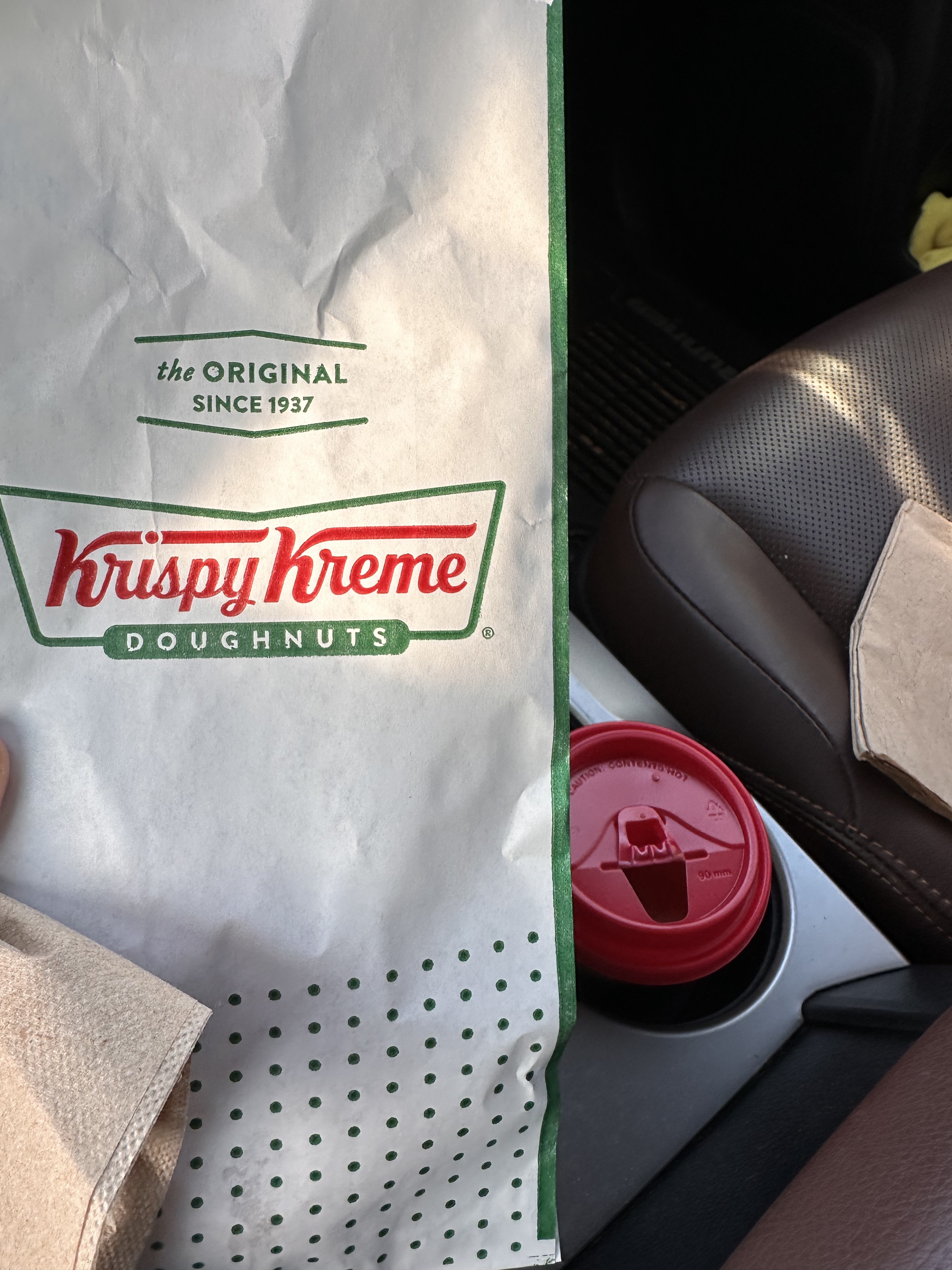 So, if you hung on this long, here’s the irony. I love donuts. And I love Krispy Kreme. Whenever we pass one we get excited if the light is on. But we don’t stop. Why? Well because obviously I know there are hundred things wrong with eating one of the donuts. Today when I was pulling out of the lab parking lot, across from a Krispy Kreme…you guess it…the light was on. I had been fasting for 13 hours at that point and I also know that within a few weeks I’m going to have to really focus more on how I live…so I thought you know what let’s do it….I jumped in that drive through and grabbed the 2 donut w/coffee deal and I enjoyed every bite/sip. I followed up when I got home with my standard high protein/healthy fat breakfast though to balance it out.